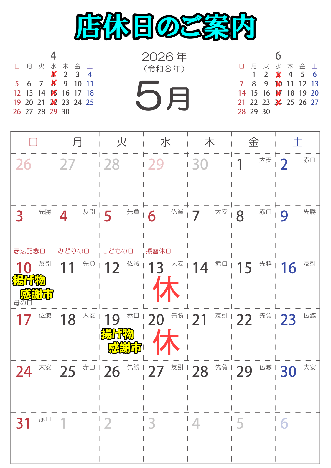 5月の定休日のお知らせ